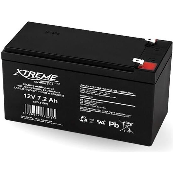 Batterie au gel 12V 7.2Ah voiture moto vehicule sans entretien dans toutes les conditions Xtreme