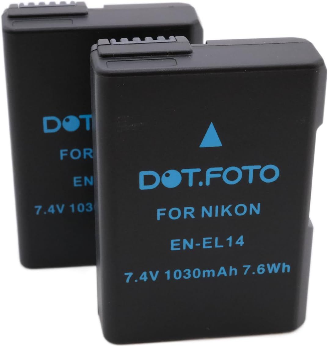 DSTE 2-Pack Rechargeable Batterie et DC111E Voyage Chargeur Compatible pour Nikon EN-EL14 EN-EL14A DF D3100 D3200 D3300 D3400 D3500 D5100 D5200 D5300 D5500 P7000 P7100 P7200 P7700 P7800