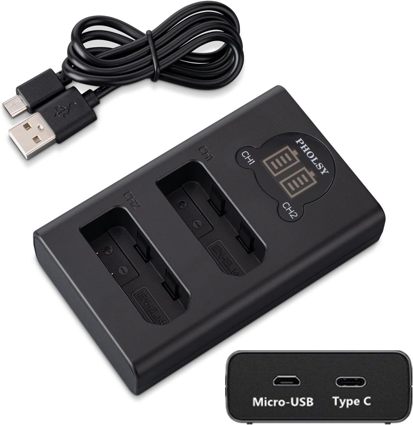 Llano Chargeur de Batterie EN-EL14 / EN-EL14a Rapide 18 W avec 2 USB-C pour Nikon D3200 D3500 D3100 D3300 D3400 D5600 D5100 D5200 D5300 D5500 DF Coolpix P7000 P7100 P7700 P7800 Battery avec Affichage