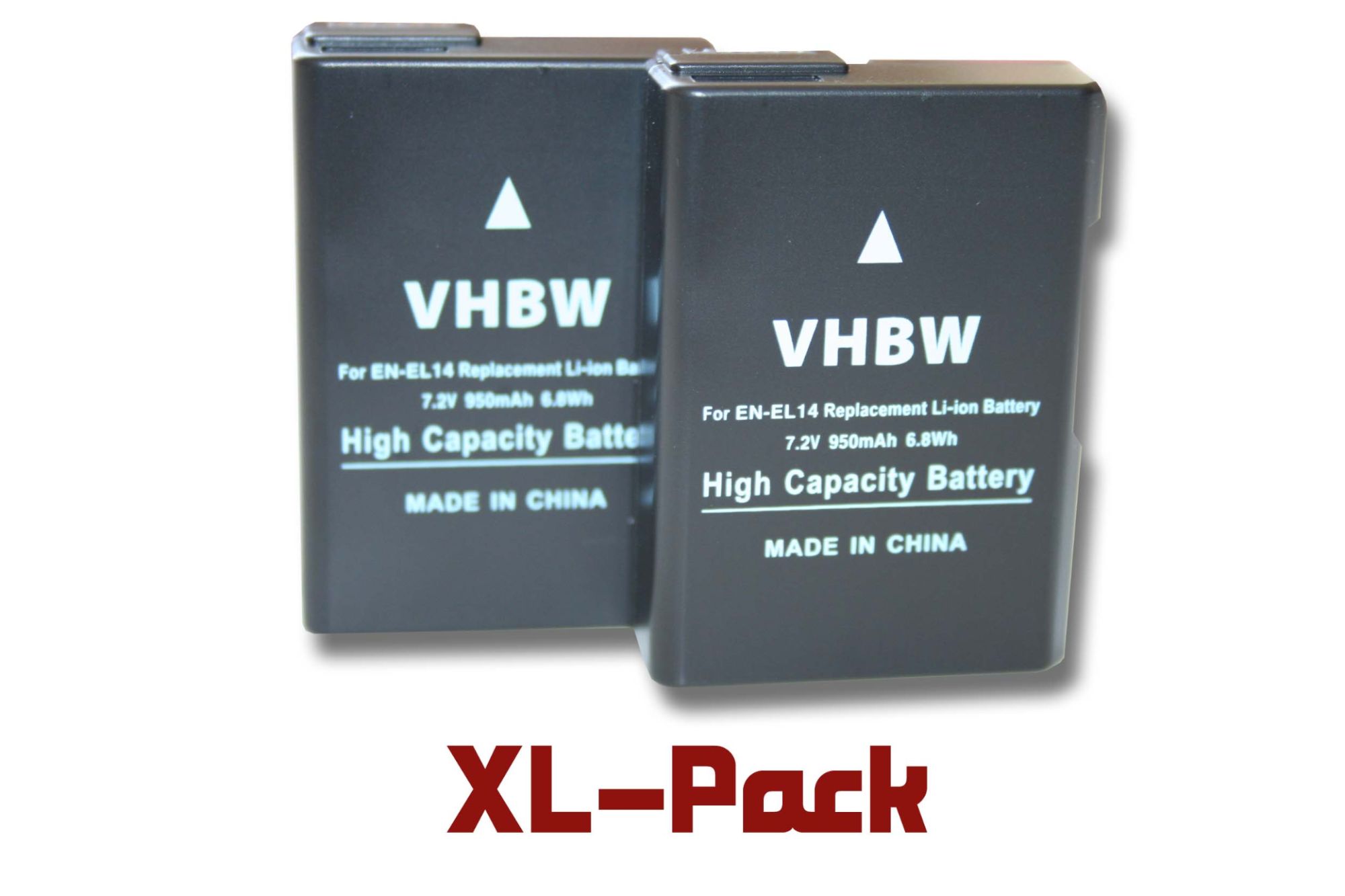vhbw 2x Batterie compatible avec Nikon D3100, D3200, D3300, D3400 appareil photo digital reflex APRN (950mAh, 7,2V, Li-ion) avec puce d'information