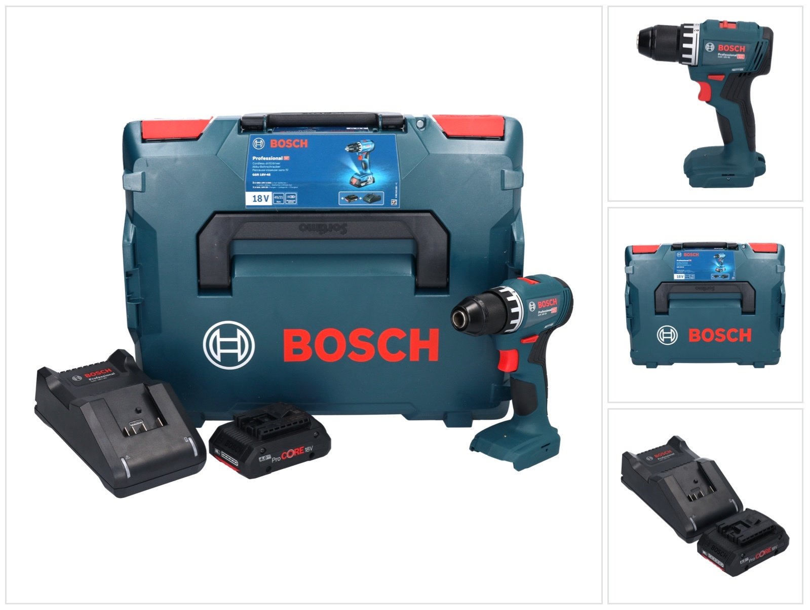 Bosch GSR 18V-45 Perceuse-visseuse sans fil 18 V 45 Nm brushless + 1x Batterie ProCORE 4,0 Ah + Chargeur + Coffret L-Boxx