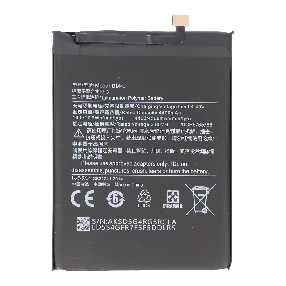 Batterie Li-polymère compatible avec Xiaomi Redmi Note 8 Pro, 3,85 V, 4500 mAh, 17,3 Wh, sans outils