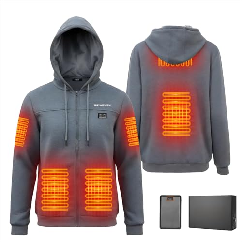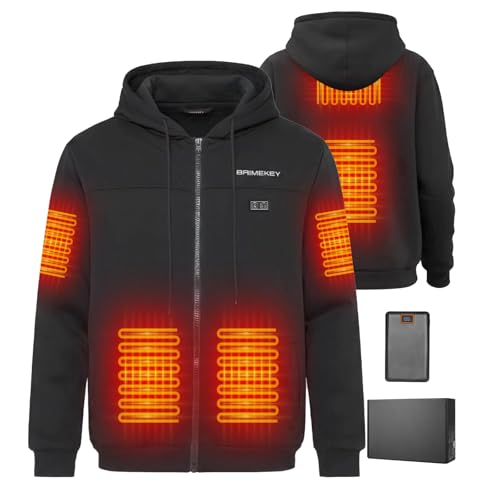 Brimekey Fermeture Éclair à Capuche Chauffante avec Doublure en Polaire pour Homme et Femme, Batterie 7.4V 20000mAh - Veste Chauffante Intelligente 6 Zones, 3 Niveaux de Chaleur pour Extérieur
