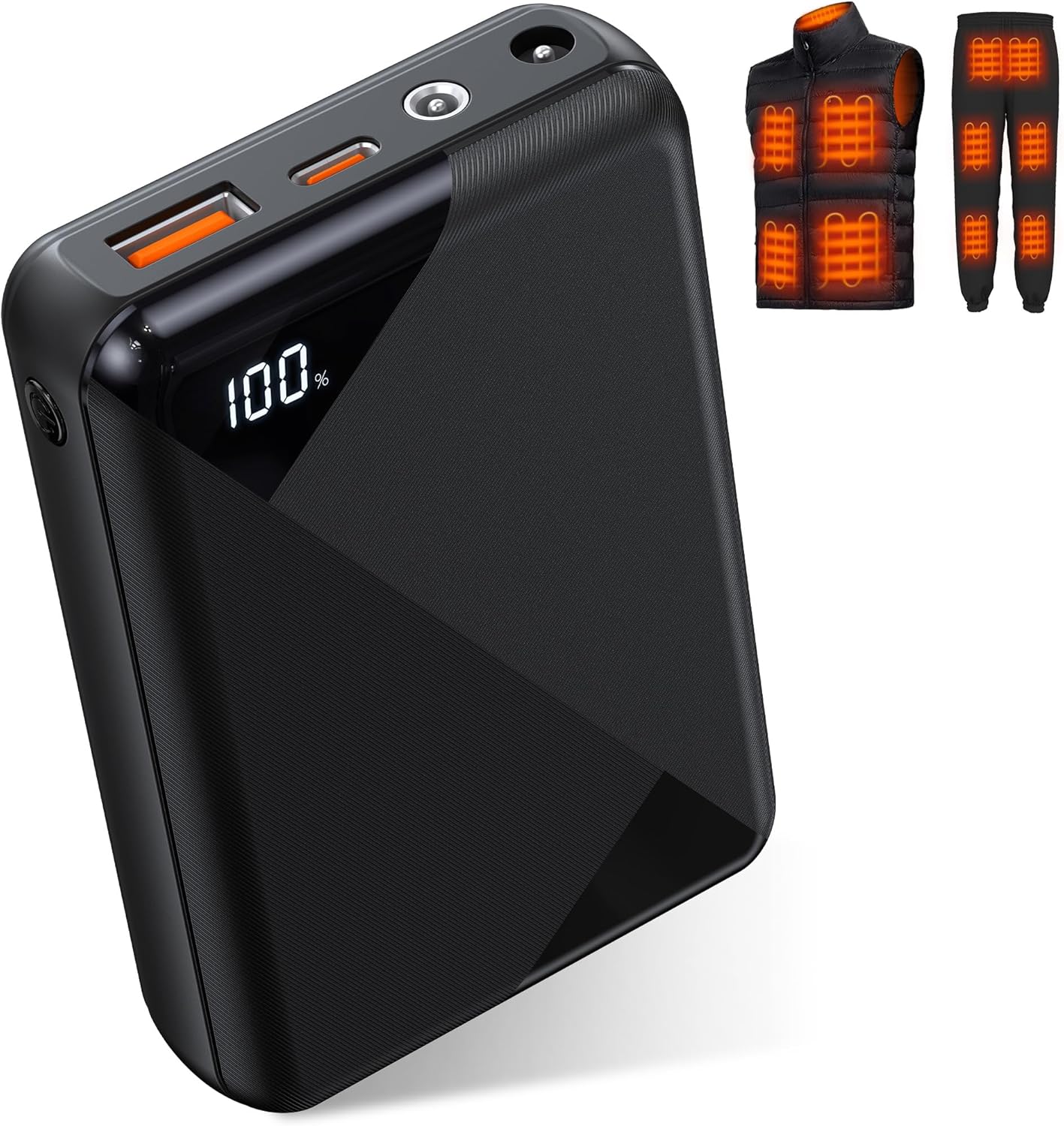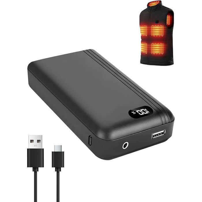 Oreilet Pack de Batterie de Gilet Chauffant, Pack de Batterie de Gilet Veste Chauffante 20 000 MAh, Chargeur Portable Rechargeable, Banque d'alimentation de Manteau Veste Chauffante