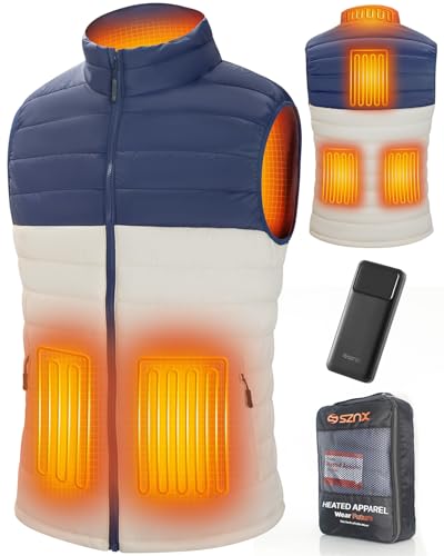 SZNX Gilet Chauffant Homme avec Batterie Incluse – Veste Chauffante Sans Manche Chauffage Rapide & Confort Thermique Hiver pour Travail Extérieur, Moto, Ski, Randonnée – USB Rechargeable, XL