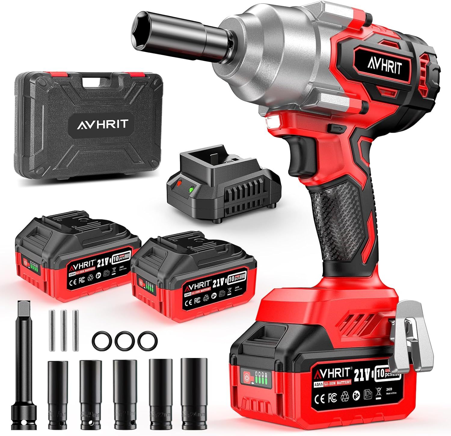 1300N.M Clé À Choc Sans Fil Brushless Avec Deux 4.0Ah Batterie,Boulonneuse A Choc Electrique 21V Pour La Voiture Et La Maison,Avec 5 Douilles À Chocs