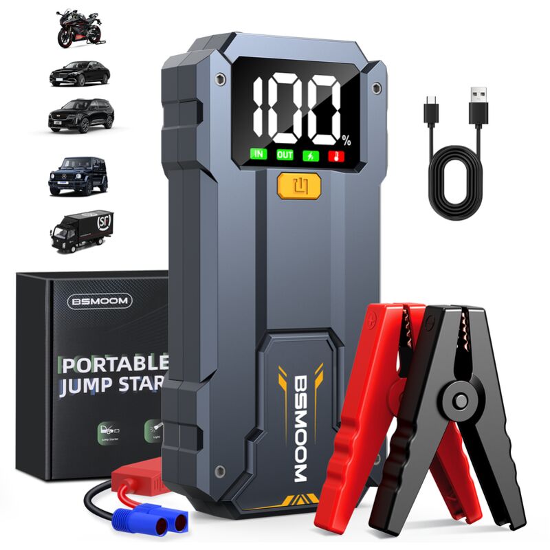 BSMOOM B07 Démarreur de batterie automobile 5000A, démarreur de voiture 12V (compatible avec tous les moteurs essence et diesel jusqu'à 8,0L),