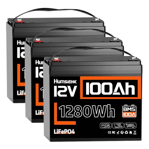 HumsiENK Lot de 3 Batteries Lithium LiFePO4 12V 100Ah, 1280Wh avec BMS Intelligent 100A, 15000 Cycles, Longue Durée 10 Ans, pour Camping-Car, Stockage Énergie Solaire, Systèmes Hors Réseau et Bateaux
