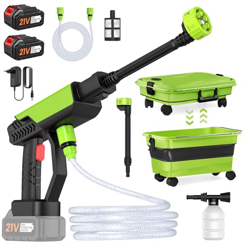 Nettoyeur Haute Pression à Batterie 24V, 1 Jeu de Nettoyeur Haute Pression électrique sans Fil avec 2 x 15000mah Batteries & Buses pour Nettoyer, Les Voitures, Les allées, Les Maisons, Les patios
