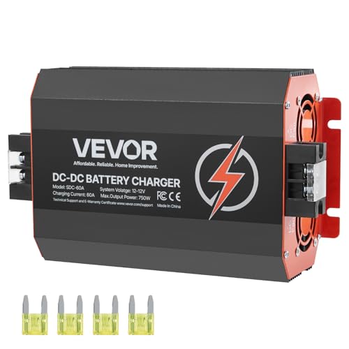 VEVOR Chargeur de Batterie CC à CC 12 V 60 A 750 W pour Batteries Plomb-acide, Lithium, AGM, GEL, Facile à Installer, Chargeur Intelligent Multi-étapes pour Voitures, Camping-cars, Camions, Bateaux