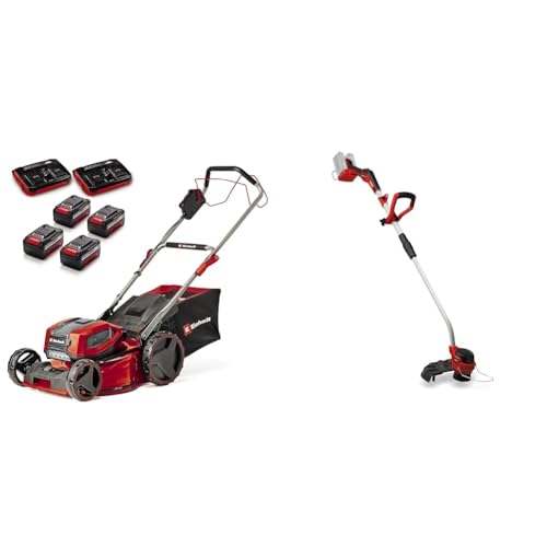 Einhell Tondeuse à Gazon sans Fil GE-CM 36/36 Li (Power X-Change, Moteur sans Charbon,Hauteur de Coupe à 6 Positions, avec 2 Batteries 4 Ah + 2 chargeurs) + Coupe-Bordures sans Fil GE-CT 18/28 Li