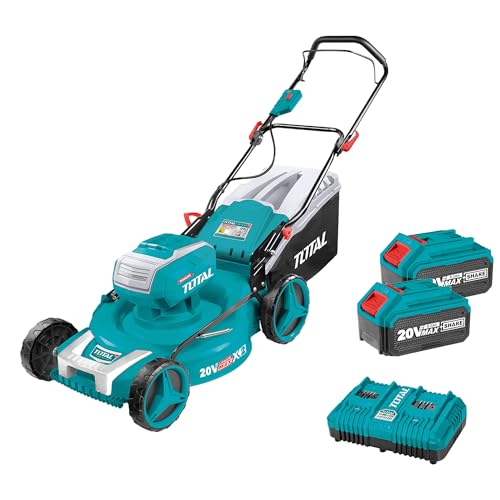TOTAL - Tondeuse Brushless à Batterie, Batterie 40V Longue durée, Inclut 2 Batteries et Un Chargeur Rapide Double, Facile à Monter, Réglage de la Hauteur, Facile à manier