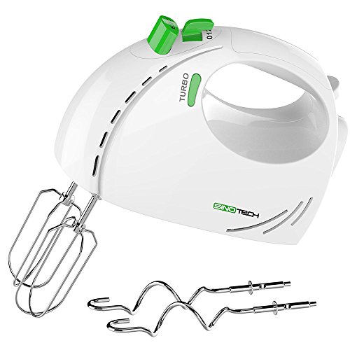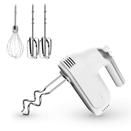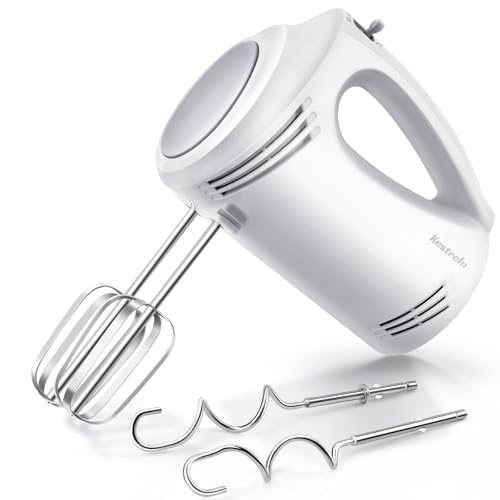 Kestreln Batteur électrique 350 Watts, 5 vitesses, fouets et crochets en acier inoxydable, poignée ergonomique, long câble, sans BPA – Blanc KS1