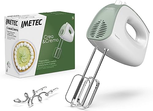 Imetec Crea & Crema Batteur Électrique, Fouets Extra-Longs pour Pâtes Sucrées et Crème Fouettée, Crochets de Pétrissage en Acier Inoxydable, 5 Vitesses, Fonction Turbo, Design Ergonomique, 500 W