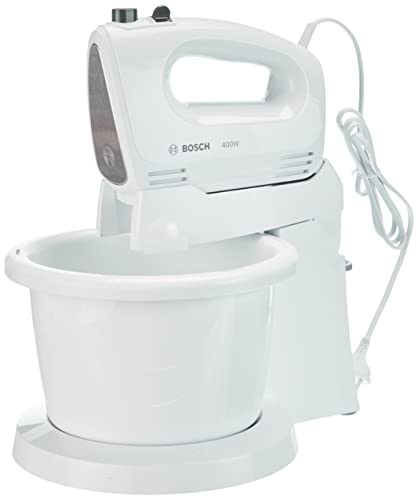 Bosch CleverMixx - Batteur électrique avec bol de 3 L à rotation automatique, 400 W, 4 vitesses et turbo, fouets et crochets en acier inoxydable pour pâtes douces et dures