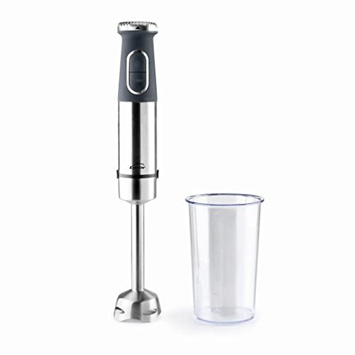 BAKAJI Mélangeur de Plongée 4in1 avec accessoires fouet, hachoir, mélangeur lames en acier, miniprimaire avec accessoires, mélangeur batteur coupe légumes électrique poignée ergonomique (4en1 (600 W)