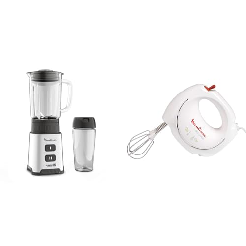 Moulinex Blender, Mini mixeur compact, 400 W, Technologie Powelix, Lames amovibles & Batteur électrique, 200 W, 2 vitesses, 2 jeux de fouets inclus, Ergonomique, Compact, Easymax blanc ABM11A30