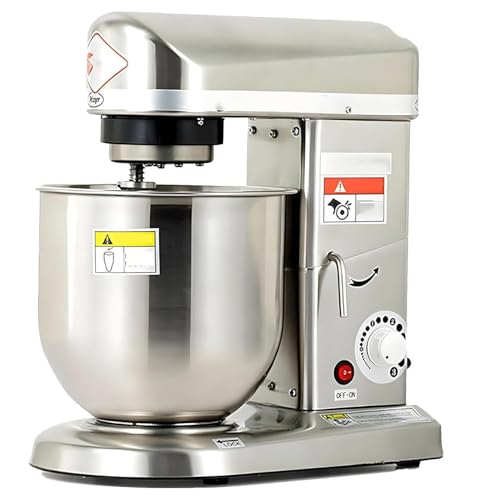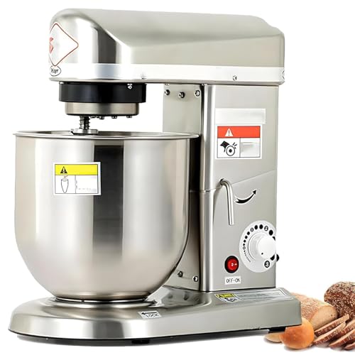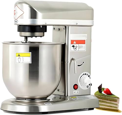 ByBoDi Robot pâtissier Professionnel Robuste, avec Crochet pétrisseur, Fouet et Batteur, 3 Vitesses, en Acier Inoxydable, idéal pour la pâte à Pizza, Le Pain et Les gâteaux. Silver-7L