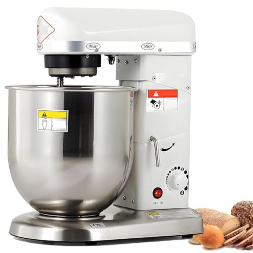 ByBoDi Robot pâtissier 500 W, Robot pâtissier électrique 3 en 1,Bol 5 L/7 L/10 L,Batteur électrique avec Fouet,Crochet,Batteur électrique,idéal pour Les boulangeries,pizzerias et Restaurants White-7L