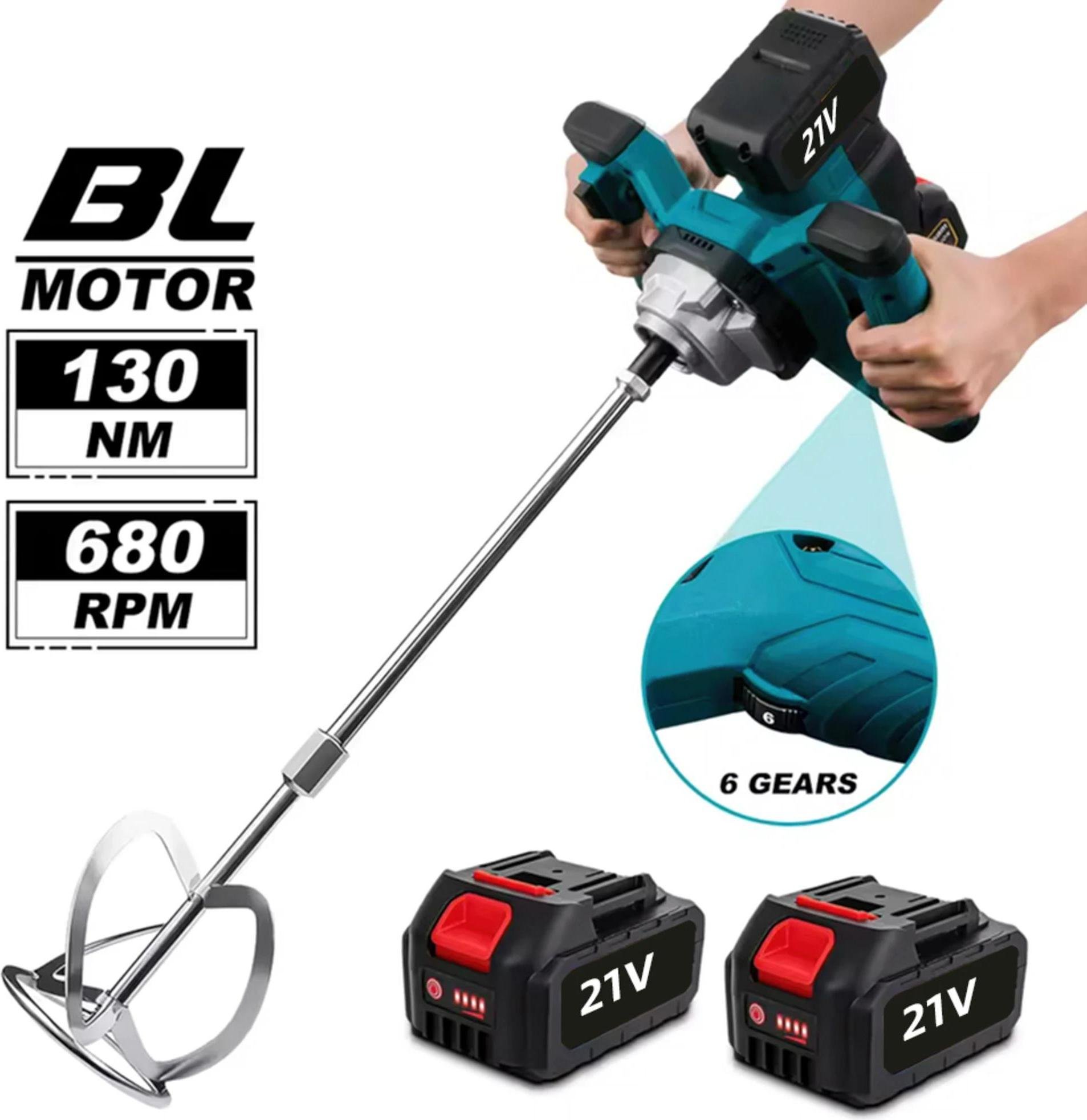 Bétonnière - Batteur sans fil - Moteur sans balais - 6 vitesses - 18 V - 2× batteries incluses - Rouge