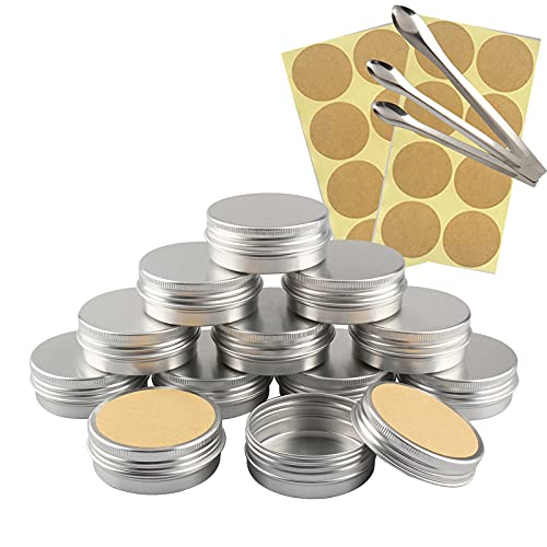 TIANZD 10 Pièces 30 ml Vide Rond Argent Pots en Aluminium Cosmétiques Pot Canettes Bocaux Conteneurs 5ml for Fait Main Bougies Crème Baume Voyage, 3x aluminium cuillère, 10x Étiquettes
