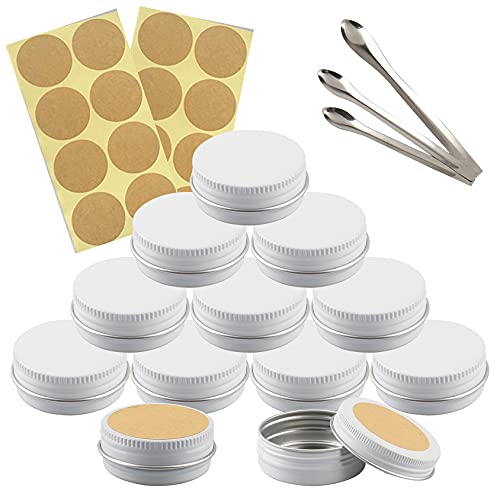 TIANZD 10 Pièces 30 ml Vide Rond Blanc Pots en Aluminium Cosmétiques Pot Canettes Bocaux Conteneurs 30ml for Fait Main Bougies Crème Baume Voyage, 3x aluminium cuillère, 10x Étiquettes