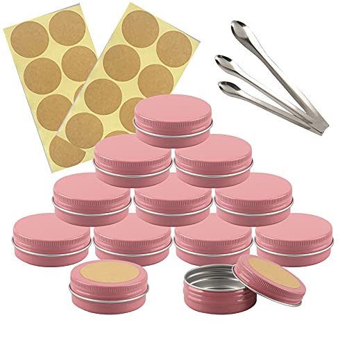 TIANZD 10 Pièces 15 ml Vide Rond Rose Pots en Aluminium Cosmétiques Pot Canettes Bocaux Conteneurs 15ml for Fait Main Bougies Crème Baume Voyage, 3x aluminium cuillère, 10x Étiquettes