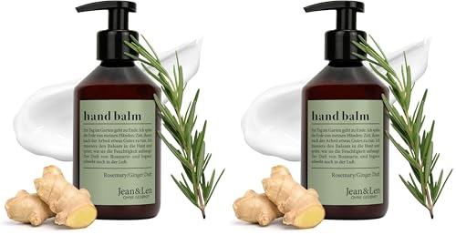 Jean & Len Baume pour les mains Rosemary & Ginger, avec huile d'argan bio, beurre de karité et vitamine E pour une peau douce, soin hydratant pour les mains pour les peaux sollicitées, parfum frais