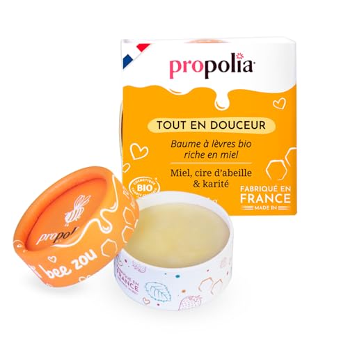 PROPOLIA - Bio - Baume à lèvres Miel - Répare et nourrit les lèvres sèches et abîmées - Miel, Cire d’abeille et Karité - 100% naturel - Fabriqué en France - Pot 6 g