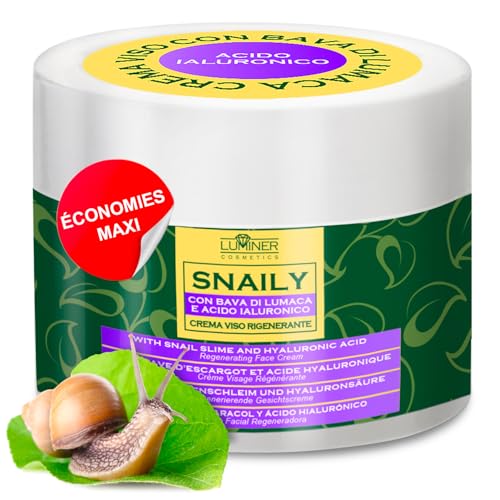 Luminer Crème Visage 150 ml – Anti-Rides à 70 % bave d’escargot, acide hyaluronique pur et vitamine C, hydratation intense, soin anti-âge, peau éclatante, fabriquée en Italie