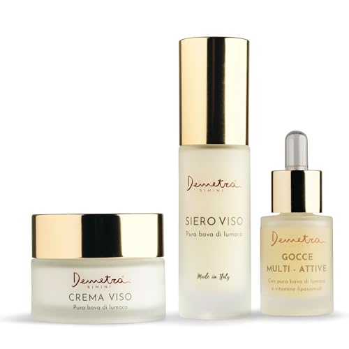 Demetra Kit Skincare 3 en 1 – Crème Visage 85%, Sérum Visage 90% et Gouttes Multi-Actives 98% – Bave d’Escargot, Acide Hyaluronique, Vitamines Anti-Âge
