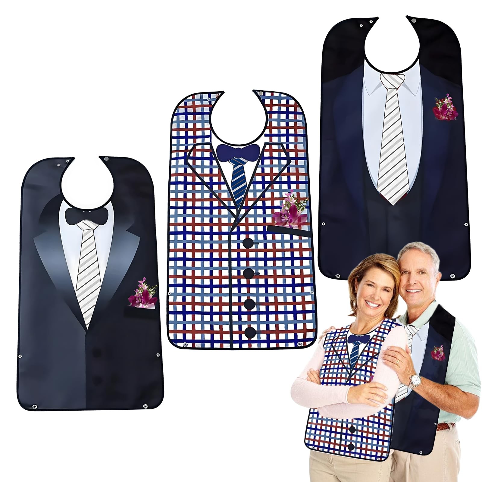 Lot de 3 Bavoir Adulte, Bavoirs Imperméables Réutilisables pour Seniors, avec...