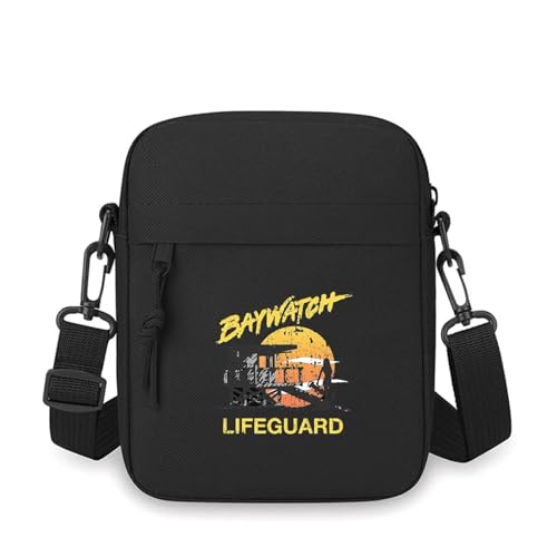 QIOEURYU Sac à bandoulière simple épaule Baywatch sauveteur coucher de soleil cabane de plage Hommes Femmes Dessin animé Film Impression Design Unisexe Cadeaux de vacances