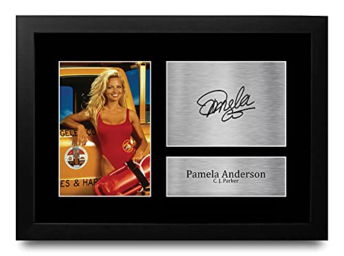 HWC Trading FR A4 Pamela Anderson Baywatch Cadeaux Imprimé Signé Autographe Photo pour les fans d’émissions de télévision - A4 Encadré