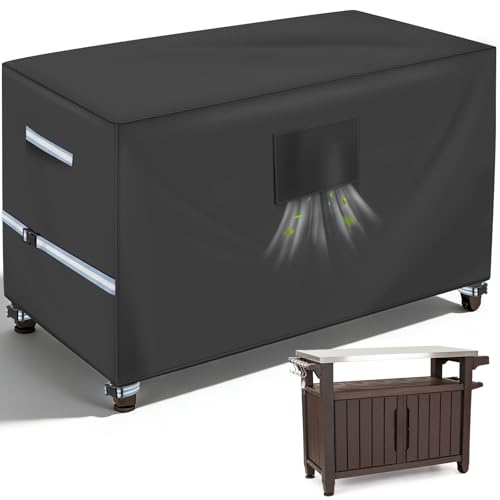 Outdoor Table Cover 55 Inch, Heavy Duty Waterproof Fabric BBQ Cart Cover Compatible with 52-inch Keter Unity XL Portable Outdoor Table, Grill Cart Serving Bar Table Patio Cabinet Cover,55" x 24" x 32"