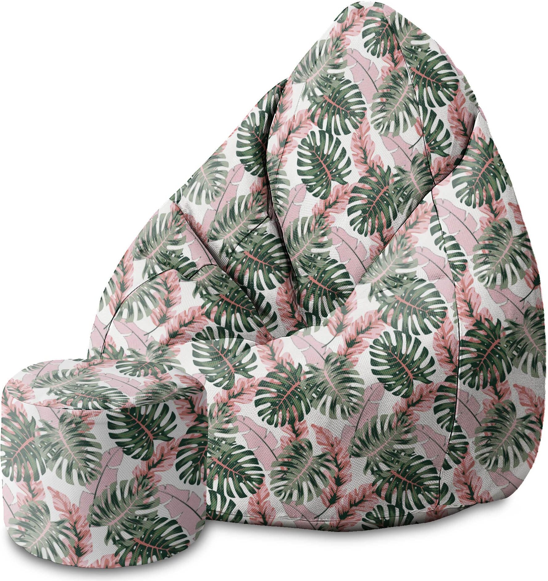 Dreamroots Bean Bag Bean Bag 80x80x120cm Pouf avec dossier et tabouret et housse Coussin de sol Chill Sack Tropical Pink and Green Leaves