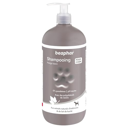 Beaphar – Shampoing Premium pour Chien au Pelage Blanc – Extraits Naturels d'Edelweiss, de Lait de Karité – Ravive l'éclat du Pelage et protège du jaunissement – pH Neutre et sans parbens – 750 ML