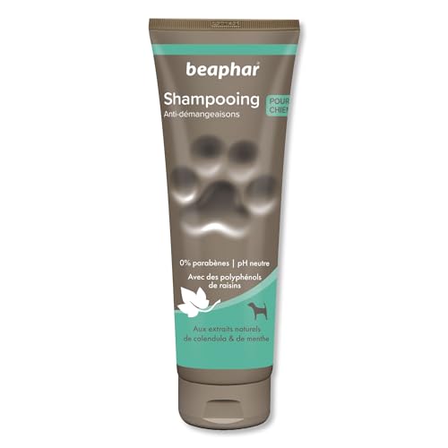 BEAPHAR – Shampoing Anti-démangeaisons pour chien – Extraits naturels de Calendula, de Menthe et du polyphénol de raisin – Apaise les démangeaisons et irritations – pH neutre et sans parben – 250ml