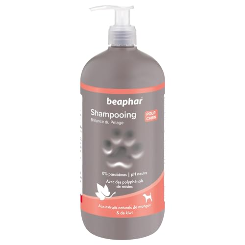 BEAPHAR – Shampoing Premium brillance du pelage pour chien – Aux polyphénols de raisin, aux extraits naturels de Mangue & de Kiwi – Donne éclat et brillance au poil –pH neutre et sans parabens– 750 ml