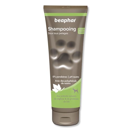 BEAPHAR – Shampoing Premium Doux Tous pelages pour Chien – Aux extraits naturels de réglisse & de protéines de blé – Nourrit, Pelage sain et Brillant – pH Neutre & sans parabens – 250ml