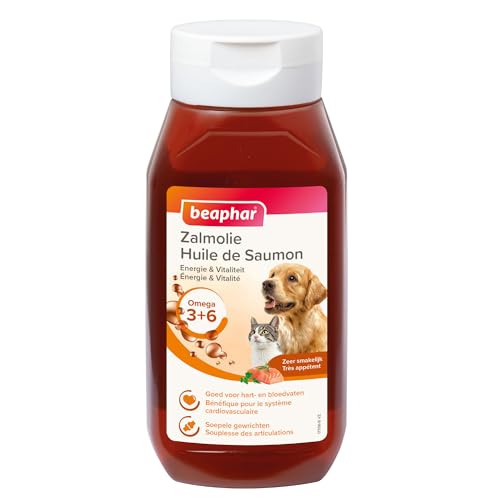 BEAPHAR – Huile de saumon pour chien et chat – Complément alimentaire – Omega 3 et 6 – Bénéfique sur le système cardio-vasculaire, le pelage et les articulations – Apport énergétique – 940 ml