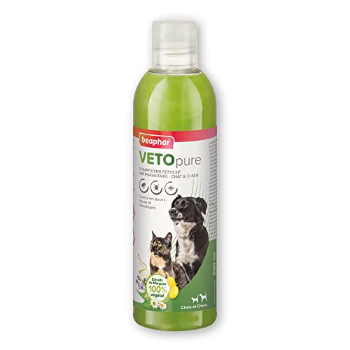 Beaphar – VETOPURE – Shampoing répulsif antiparasitaire pour Chien et Chat – Extraits de Margosa, de Pyrèthre et de Lavandin – Contre Les puces, tiques et moustiques – Action immédiate – 250ml