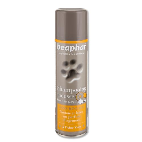 BEAPHAR – Shampoing Mousse sans rinçage à l'Aloe Vera pour Chien et Chat – Nettoie, nourrit, protège et parfume Le Poil aux Agrumes – Pratique et Facile à Utiliser – Flacon 250 ML