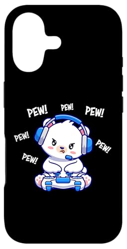 Funny Kawaii Kids Girls Boy Video Gamer Pew Polar Bear Lover Coque pour iPhone 16