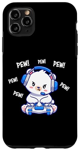 Funny Kawaii Kids Girls Boy Video Gamer Pew Polar Bear Lover Coque pour iPhone 11 Pro Max