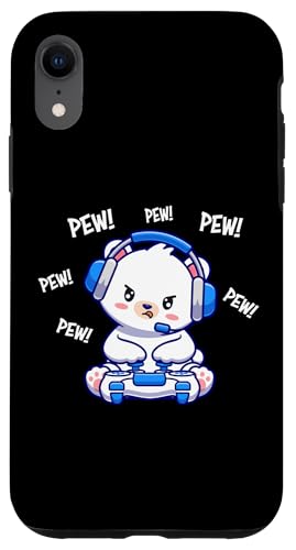 Funny Kawaii Kids Girls Boy Video Gamer Pew Polar Bear Lover Coque pour iPhone XR