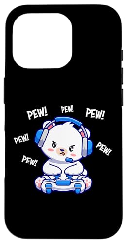 Funny Kawaii Kids Girls Boy Video Gamer Pew Polar Bear Lover Coque pour iPhone 16 Pro Max