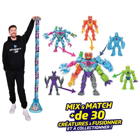 MrBeast Lab Hybrids Coffret Multiple, Découvre différentes Parties du Corps pour créer 2 Figurines, Inclut des éléments du Golden Panther Dragon, Fusionne des créatures, + de 30 à Collectionner
