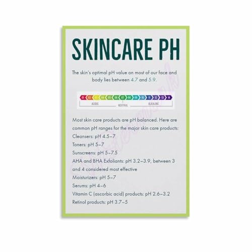 JMVLVLOA Beauty Salon Skincare pH Chart for Skin Care Routine and Decor(Unframed,08x12inch(20x30cm))