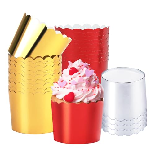 150 Paquets Moule Cupcake, Grandes Moules à Cupcakes Et Muffins En Papier Sulfurisé, Or Argent Rouge Jetables Pour La Décoration Des Fêtes De Bébé Noël Mariage Anniversaire Du Fond 2,36 Pouces